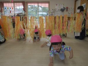 運動会に向けて、スズランテープのトンネルをくぐる練習も、遊びの一環として行ってみました✨
