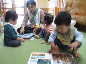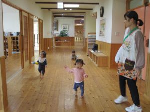 また、長い廊下を自分のペースで歩いたり、絵本コーナーでは好きな本を棚から取り出し真剣に読む姿が見られました。子どもたちなりに自分の好きな物を探し、遊びを楽しむことが増えてきました💛♪