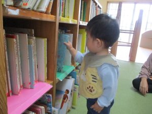 「どの絵本がいいかな~?」と絵本を探しているお友だち!