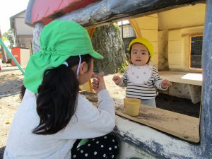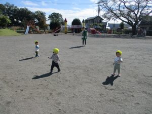 戸外遊びでは、靴を履いて歩行を楽しんだり、葉っぱやどんぐりなど自然物にも触れながら遊ぶ姿が見られています♪今週は異学年の友だちと一緒に遊ぶ機会も多くありました。