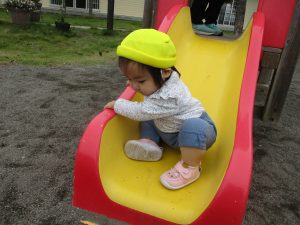 今週は滑り台にも挑戦!!手すりに掴まって、上手に滑ることができていました♡