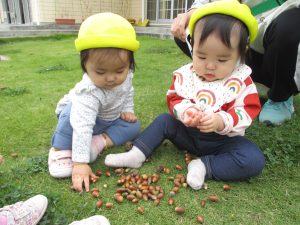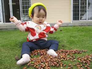 幼児クラスのお友だちが集めた大量のどんぐりを見ると大興奮の子ども達!!