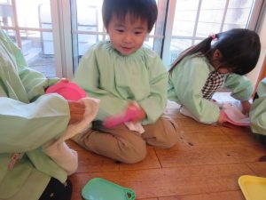 子どもたちはお家に帰って遊ぶことことを楽しみにしていました♪