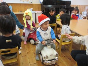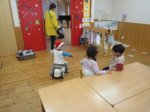 なんと!!すみれ組にもかわいいサンタさんたちが車に乗って来てくれました🎅