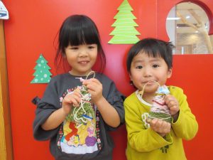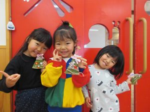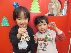 子どもたちは、夢中になって仕上げていました!出来上がったツリーを子どもたち同士で見せ合って、「かわいいね!」「上手!」と褒め合う姿がありました😊