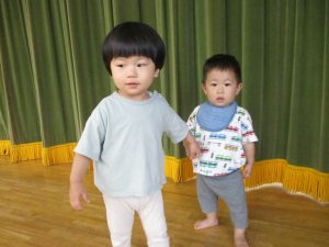 0歳クラスのお友だちが遊びに来ると、手を引いて遊びに誘ってあげたり、いい子いい子と頭を撫でてあげたりと優しい姿も見られました☆彡
