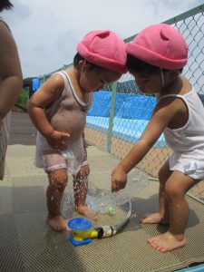 今週はテラスで水遊びを行いました💦