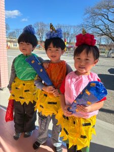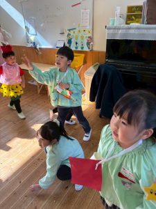 ずっと不安だった節分が無事に終わり、すっきりした表情の子どもたちでした☺️