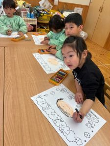 画用紙の中に大きくはっきりとクレヨンで自分の顔を堂々と描くことができていました☺️