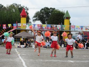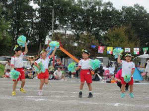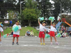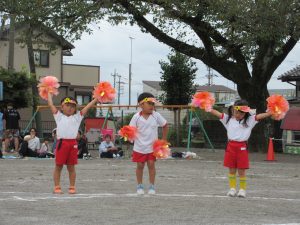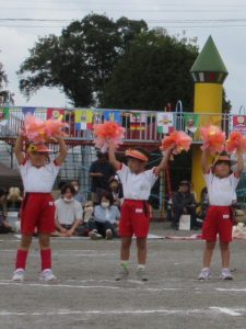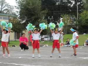 音楽が流れると元気に「ヘイ!ヘイ!」とかけ声を掛けたり、ポンポンをたくさん振ってかわいらしくダンスを踊ったりしていました♪