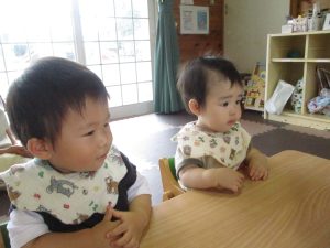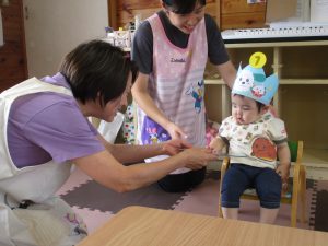 今月でふたば組のお友だち4名とも1歳になりました!!