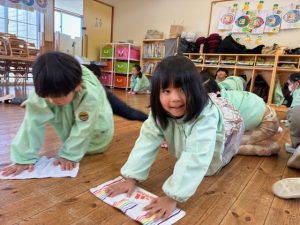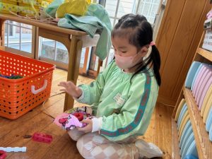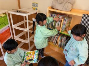 その後はグループに分かれて絵本を綺麗に並べたりロッカーを拭いたりシールを剥がしたり…お友達と協力してお掃除を頑張りました♪