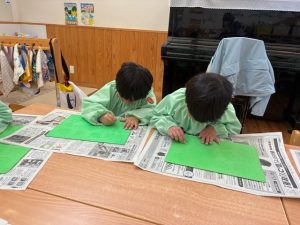 大掃除ではみんなで「ありがとう」の気持ちを込めて保育室内や靴箱の掃除を行いました🧹