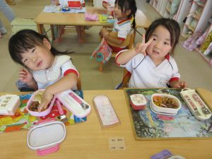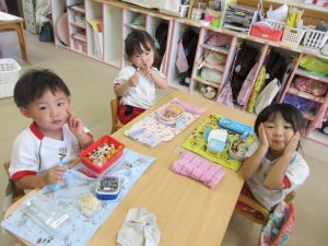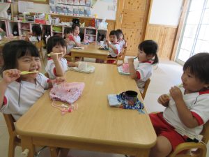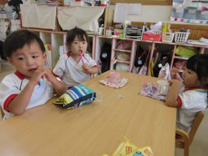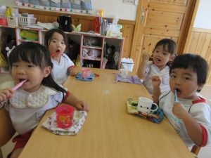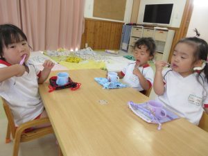 上の歯~♪下の歯~♪と保育者の真似をしながら