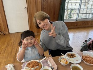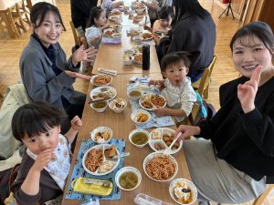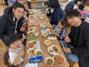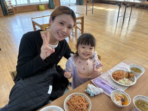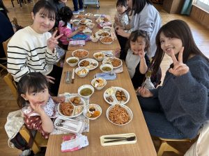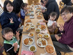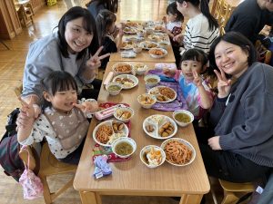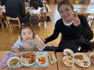 会食会では、お家の人と一緒にお給食を食べることができ、嬉しそうな子どもたちでした😋