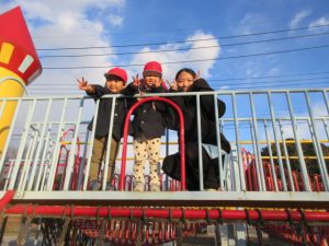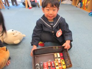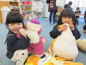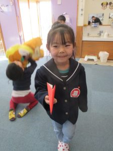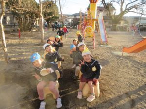 今月に入ってから、日が暮れるのが早く戸外遊びをした後に、室内遊びをするという流れに変わり、子どもたちは2回遊べると大喜び(^^)/