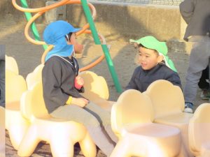 戸外ではお友だちとたくさんコミュニケーションを取り、仲よく遊ぶ姿が見られています❤