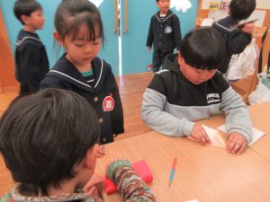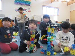 すみれ組のお友だちも作り方がわからないと、さくら組のお友だちに聞いて作る姿も見られています(o^―^o)